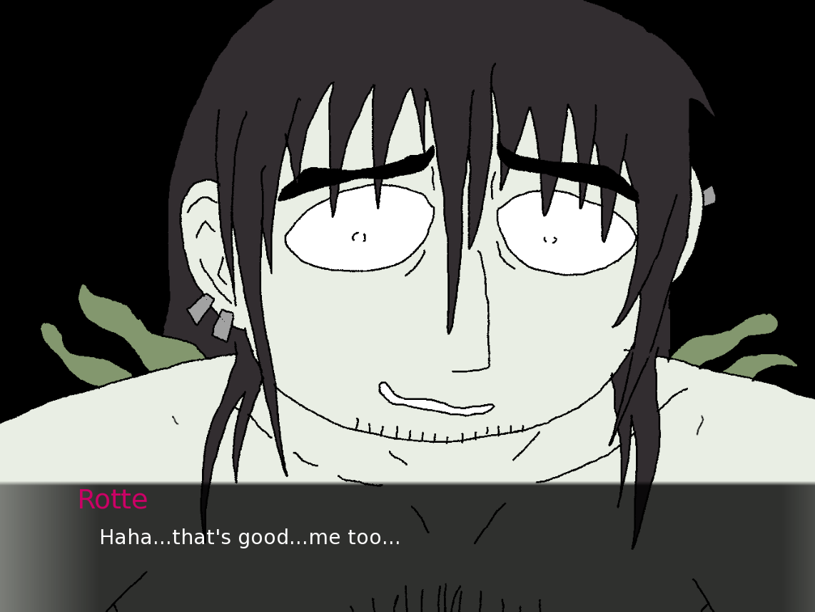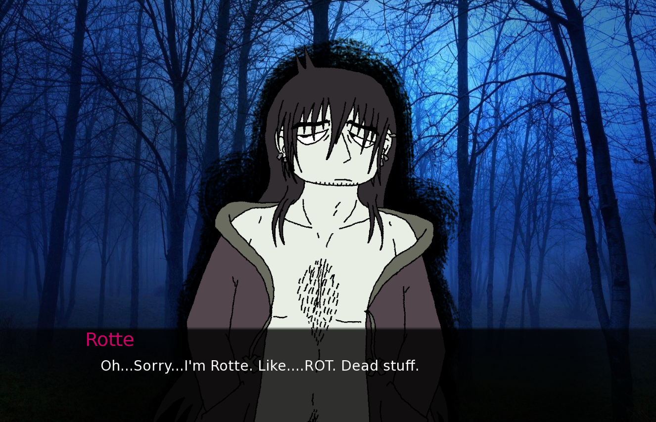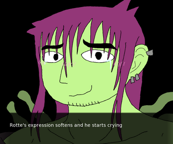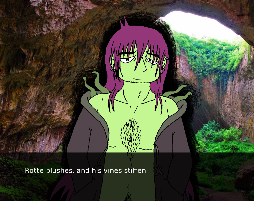 Whilst trying to end your life, you are stopped by a mysterious plant man named Rotte. His intentions are unknown to you, but he seems untrustworthy...